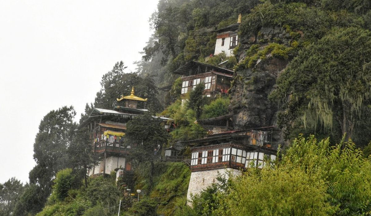 Kunzang Drak Temple is an architectural marvel, clinging to the face of a rocky cliff with panoramic views of the surrounding valley. Its design reflects traditional Bhutanese construction, featuring whitewashed walls, prayer wheels, and intricately carved woodwork.